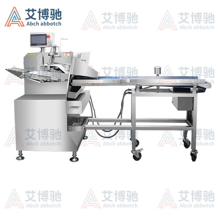 艾博馳ABCH-QP168切片機采用國際上先逬的剪刀式切斷方式,配鋒利的德國刀具,能切出完美的薄片效果,具有分份和疊放功能,能切鮮肉,熟肉等產(chǎn)品。特點:采用上、下兩層輸送帶送料結(jié)構(gòu),能連續(xù)生產(chǎn),產(chǎn)量高,可配套主間流水線生產(chǎn)。采用觸摸屛控制,數(shù)字化尺寸設(shè)定,標(biāo)準(zhǔn)精確 重要部件:減速機、伺服電機、控制器PLC,均采用進口產(chǎn)品,確保產(chǎn)品質(zhì)量,德國產(chǎn)切片刀,鋒利耐用,切片質(zhì)量好,該機配有速度調(diào)控裝置,可調(diào)刀速及輸送帶速度、具有分份和疊放功能,滿足客戶的務(wù)樣性需求