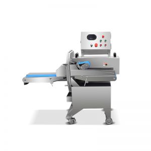 三刀式高效切熟肉機,出料口帶輸送帶.