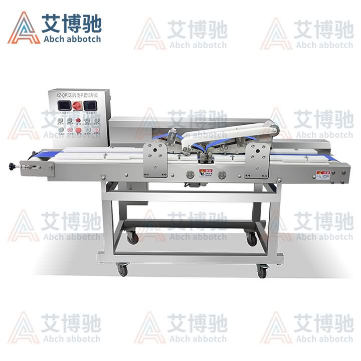 艾博馳ABCH-QP121切片機是專業(yè)用于鮮品或者熟的無骨雞胸、鴨胸、牛肉、豬肉切片,是對肉的橫向(水平)整肉一次性多片切割,也就是把一塊完整的肉放到機器的輸送帶上,輸送帶傳送過去后這塊雞胸肉就完全切好了。適合加工里脊肉片,雪花雞柳,無骨雞柳等產(chǎn)品的切片,配上我公司生產(chǎn)的切條機更省工,省力,提高產(chǎn)量。輸送帶條紋狀,清洗方便,厚度有2mm,可切出均勻的薄肉片,在-20度的條件下,皮帶也正常使用。刀片采用日本進口材質(zhì),韌性好,硬度高,使用壽命長,在高頻率運動工作過程中絕對不會斷裂,降低了產(chǎn)品的成本。
